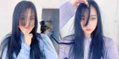 关晓彤染蓝发怼脸自拍 对镜头比耶笑容甜美