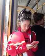 张柏芝提滑板挤地铁嫩如高中生 网友:放学别走