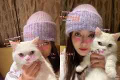搜秦岚 秦岚 1月5日, 搜秦岚 秦岚 晒出与自己的 搜猫 猫 咘咘的合照,说道:美唇后的咘咘,pink粉,买它买它买它。照片中她穿着白色上衣,头戴紫色绒线帽,一只手抱着咘咘,另一...
