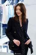 刘雯排扣西装搭波点半透视衬衫知性优雅 复古红唇显温柔